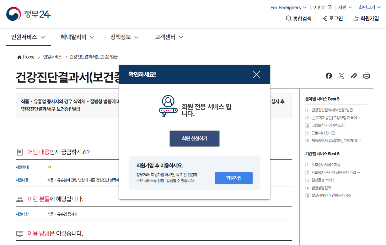 건강진단결과서(보건증) 발급 | 민원 안내 및 신청 | 정부24